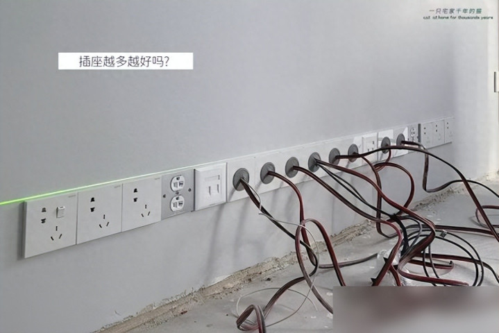 我邻居家当初听装修队的,每面墙都装了四五个插座,结果现在沙发挡住三个,电视墙的插座还露着线,丑得要命。