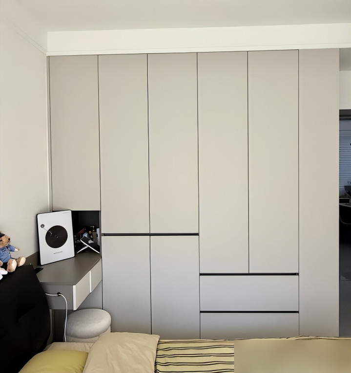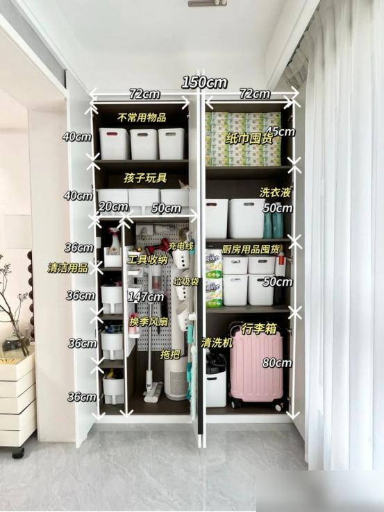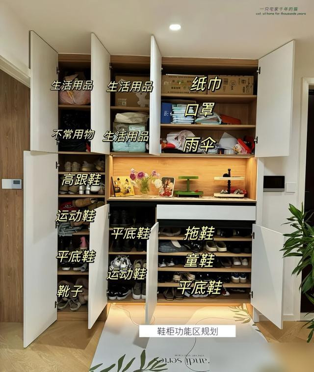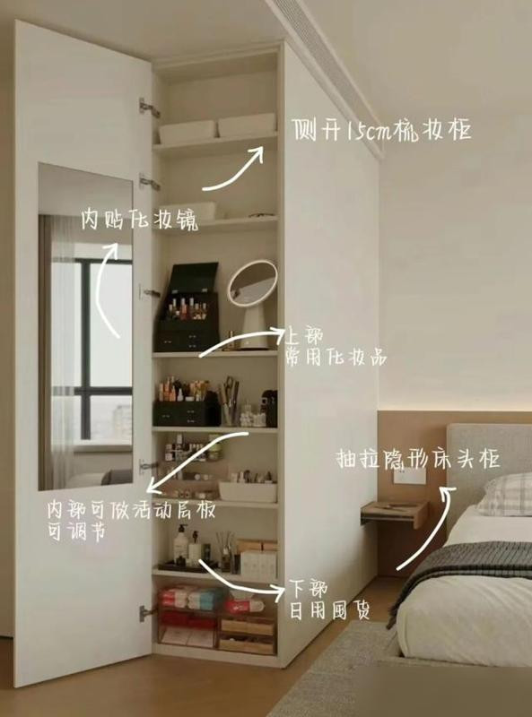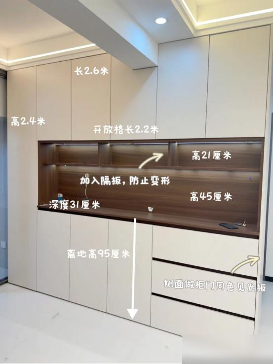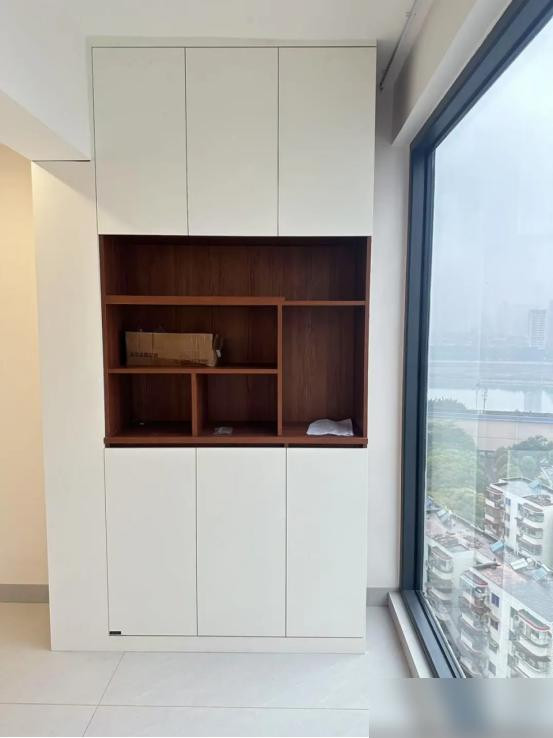 就说柜子吧,我家每个房间都做了顶天立地柜,当初我妈嫌“像仓库”,结果现在她最爱的就是主卧的大衣柜:孩子的换季外套按月份塞在分层格里,不用翻箱倒柜;她的围巾、帽子挂在侧薄柜里,出门前拉开就选,再也不会急得翻遍整个床。上次我爸的钓鱼竿找不到,我拉开玄关柜的深层抽屉,直接拿出来——你说,柜子多不是“占地方”,是“把杂乱藏起来”,这不比满屋子堆收纳盒强?